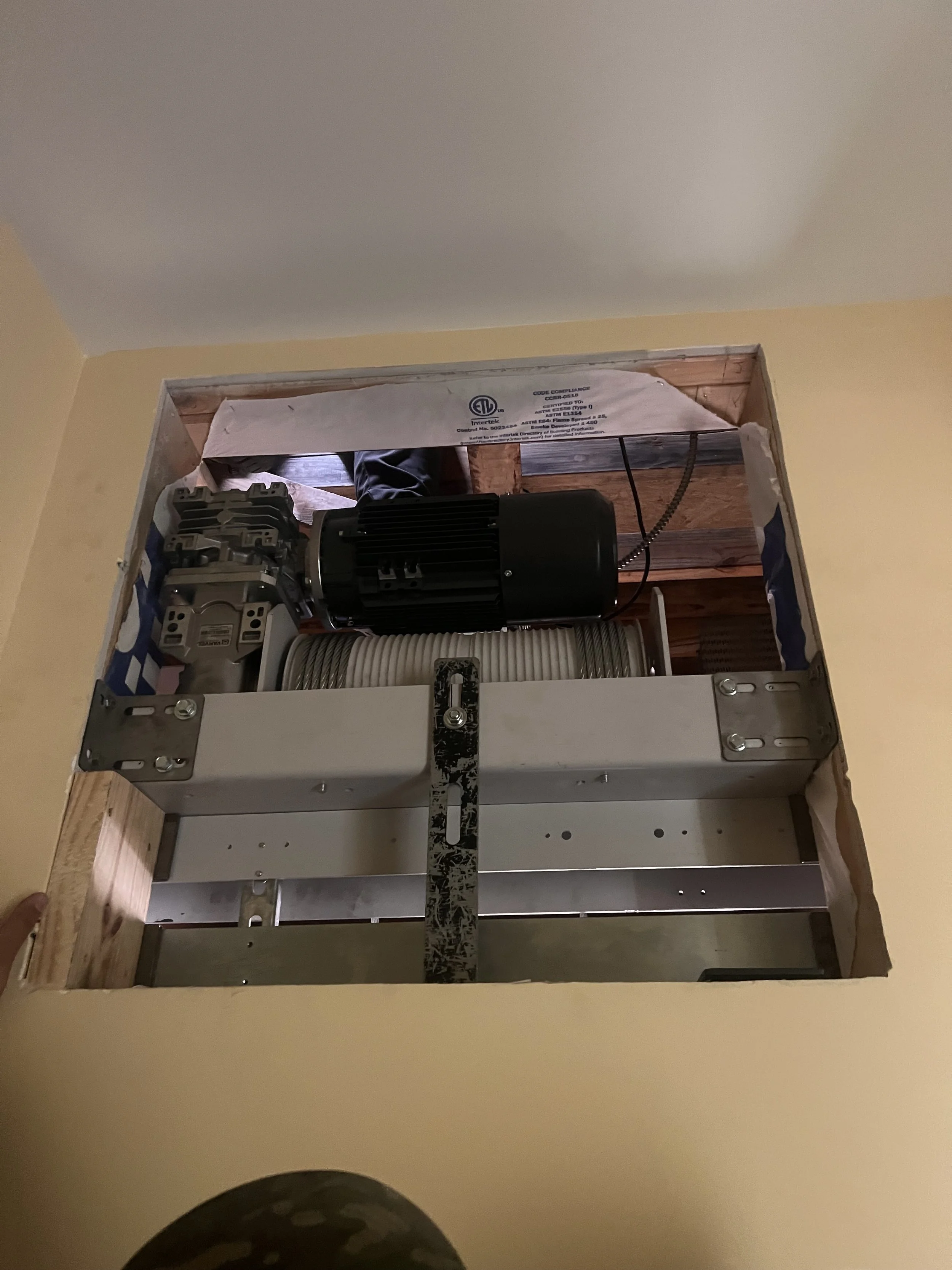 A winding drum residential elevator is a shafted system installed inside a framed hoistway built during construction or renovation. This type of elevator uses an electric motor that winds and unwinds steel cables around a drum to raise and lower the cab, providing reliable travel between floors.
